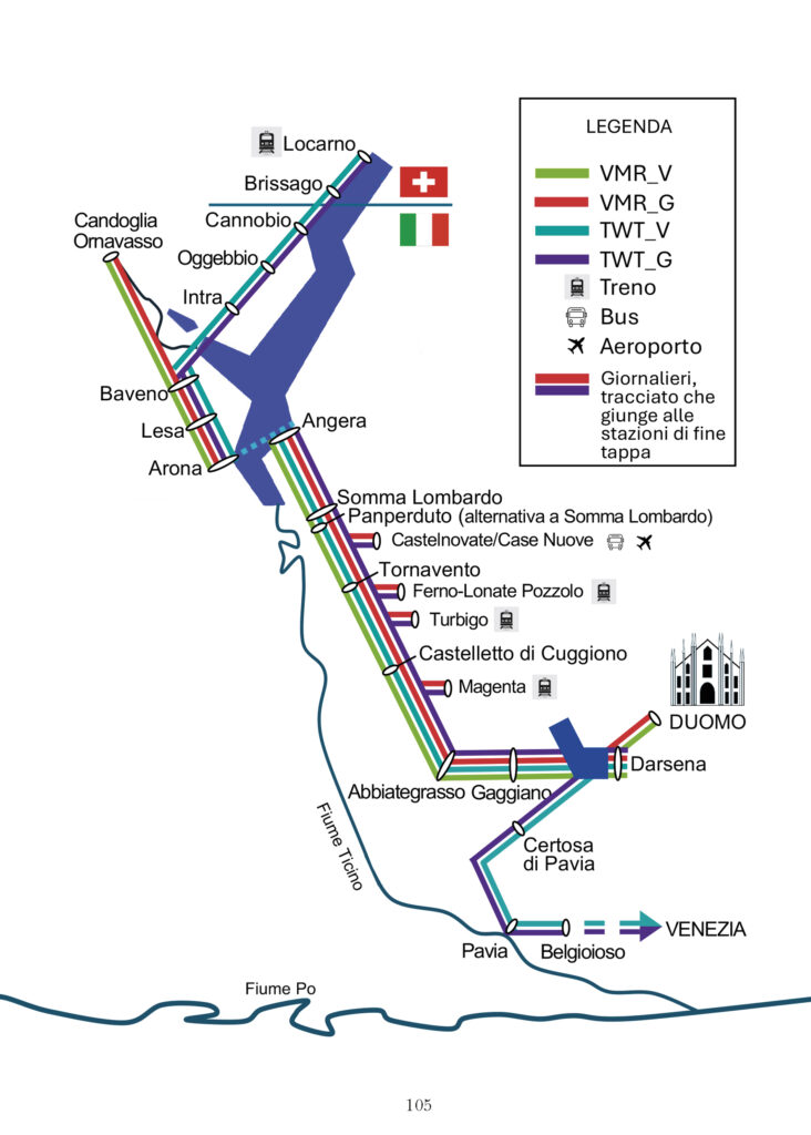 L’icona “libro” indica dove possono essere letti i brani contenuti nella guida. Ogni brano nella guida contiene un QRCode con la geolocalizzazione del luogo dove leggere.